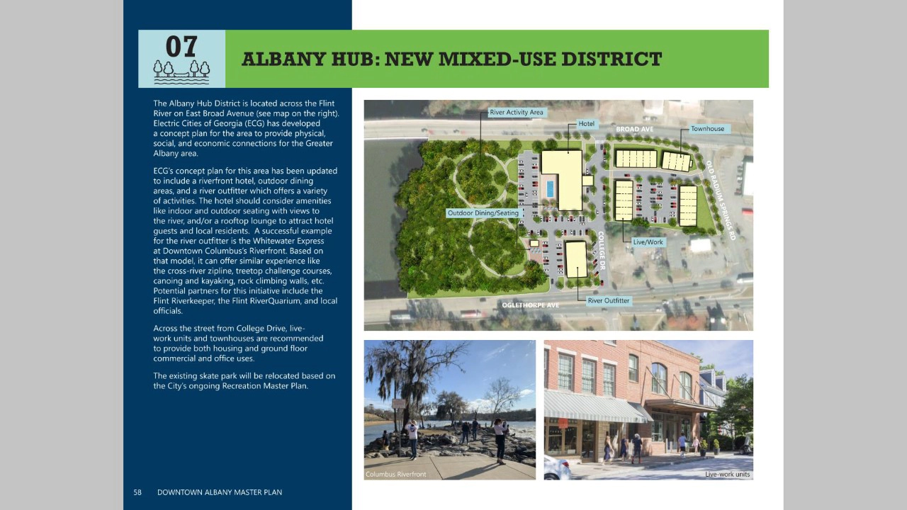 The City of Albany, in partnership with the Downtown Development Authority of Albany (DDA) and the Albany Dougherty Inner-City Authority (ADICA), engaged TSW to lead a multidisciplinary consultant team in the creation of a comprehensive plan for the city’s downtown area. The purpose of this plan was to establish a clear and compelling vision for Downtown Albany, along with actionable steps to guide high-quality development and redevelopment efforts. A key component of the plan included Town & Gown Planning strategies, aimed at strengthening collaboration between the City and local educational institutions, including Albany State University.