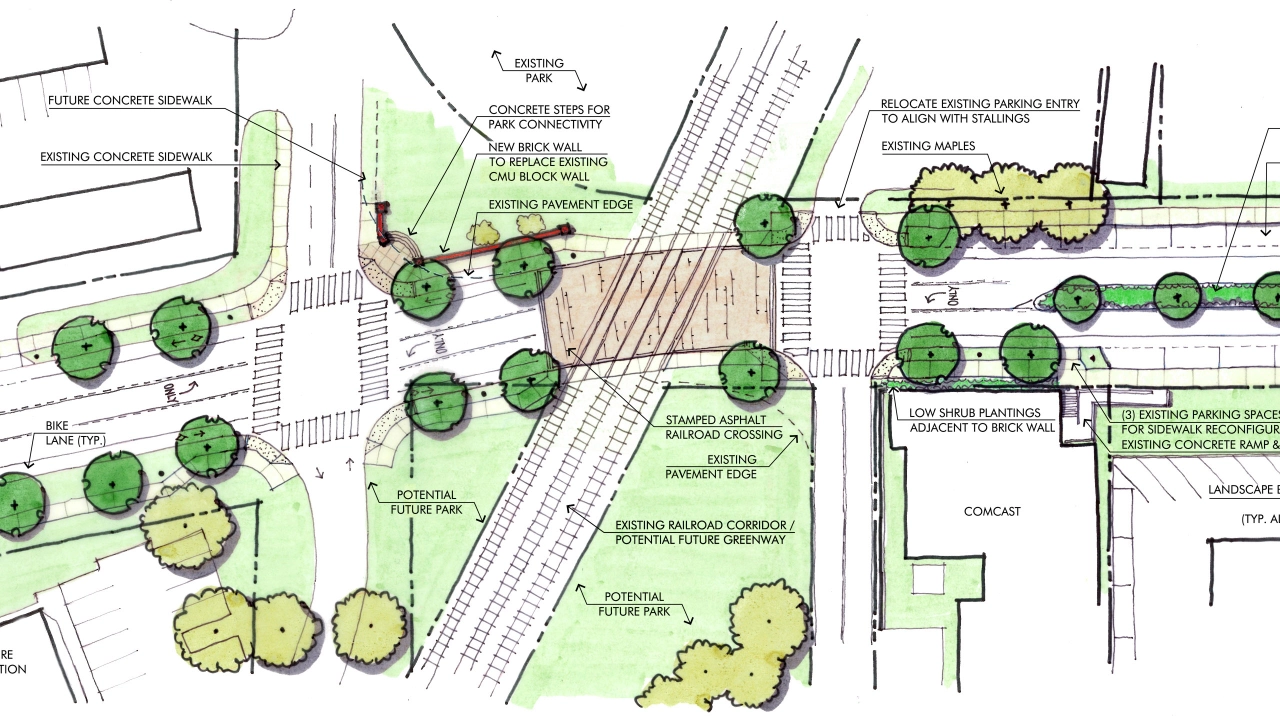 A vital component to the Pace Street corridor is its ability to accommodate future growth and potential greenway and open space linkages. As large swaths of land along this street are poised for redevelopment or have the potential for such, TSW’s concept allows for future on-street parking while continuing respecting the current land uses.
