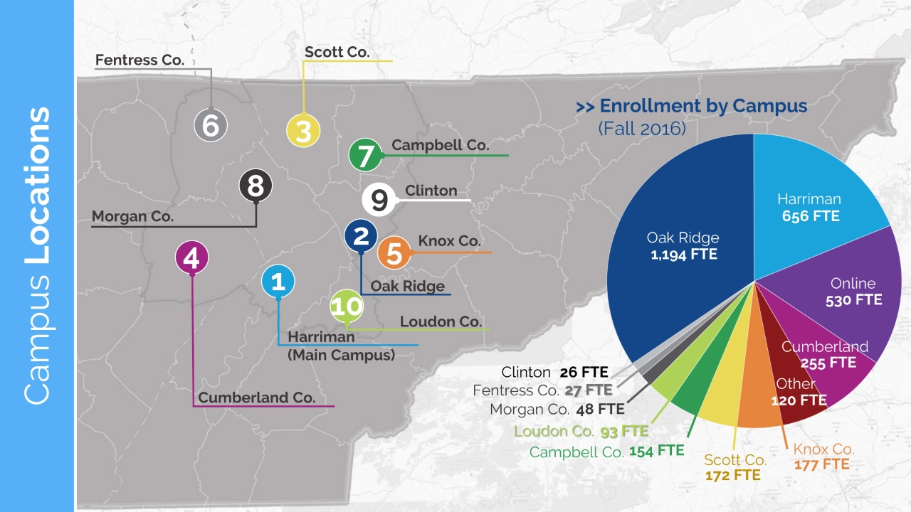 TSW recently completed The Roane State Community College Master Plan, addressing all of the college’s campuses in Middle and East Tennessee. Roane State is unique in that it provides a robust network of small campuses throughout its service area, allowing it to remain in close proximity to each resident.
