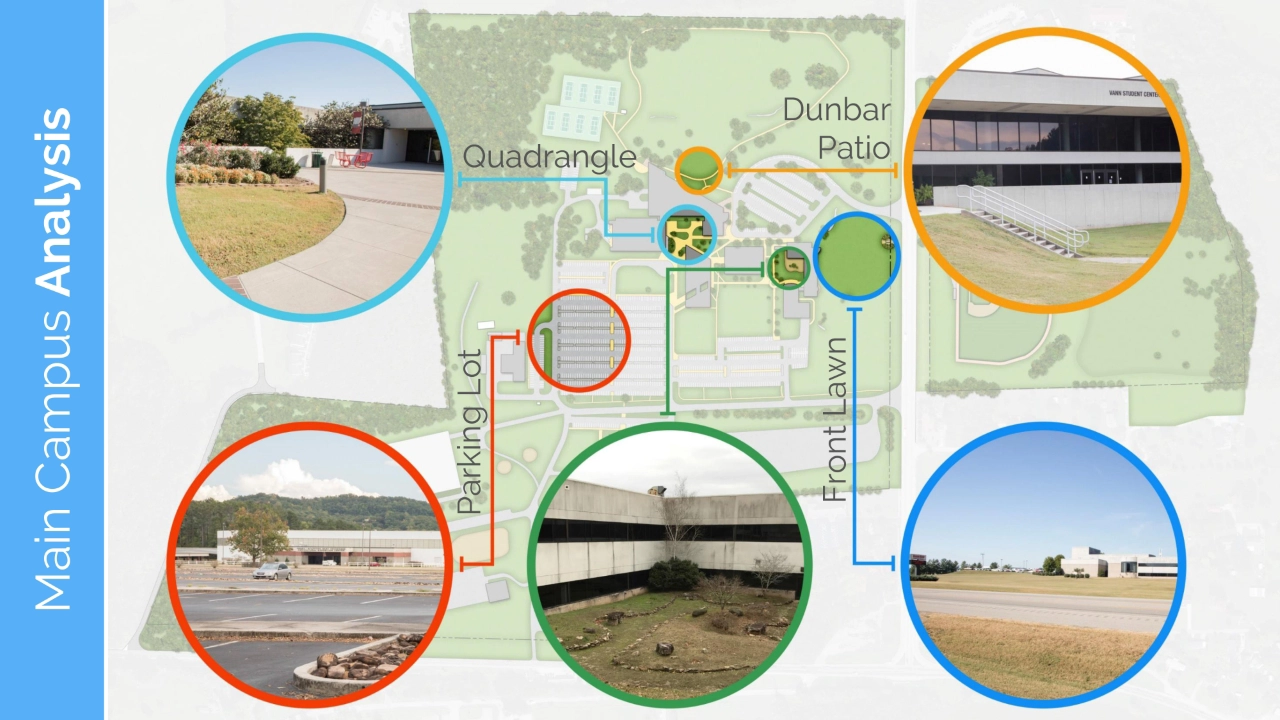 One key recommendation from Roane State Community College Master Plan regarding the main campus was to invest in outdoor gathering spaces in order to enliven and modernize the campus. TSW suggested tree plantings, landscaping improvements to complement and humanize concrete facades, and art installations. Additionally, TSW recommended strategic renovations to modernize teaching spaces, repurpose underutilized spaces, and transform the student center into a true social hub for the campus.